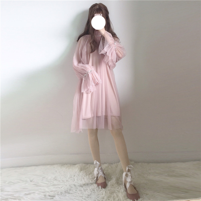 Sweet Flare Sleeve Mesh Princess Dress
