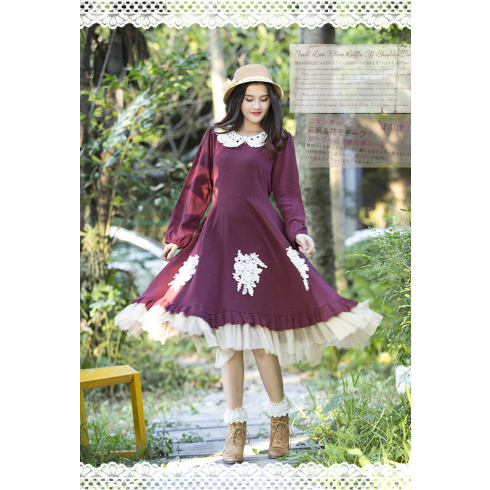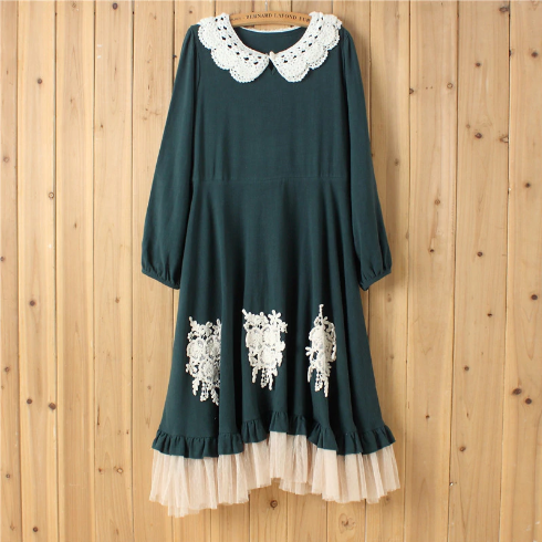 Mori Girl Lace Spliced Embroidery Autumn Dress